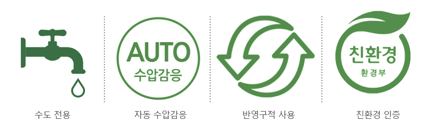절수장치를 개발·생산·시공을 통하여 기술을 축적하고 20%~50%의 절수효과를 입증한바 있습니다